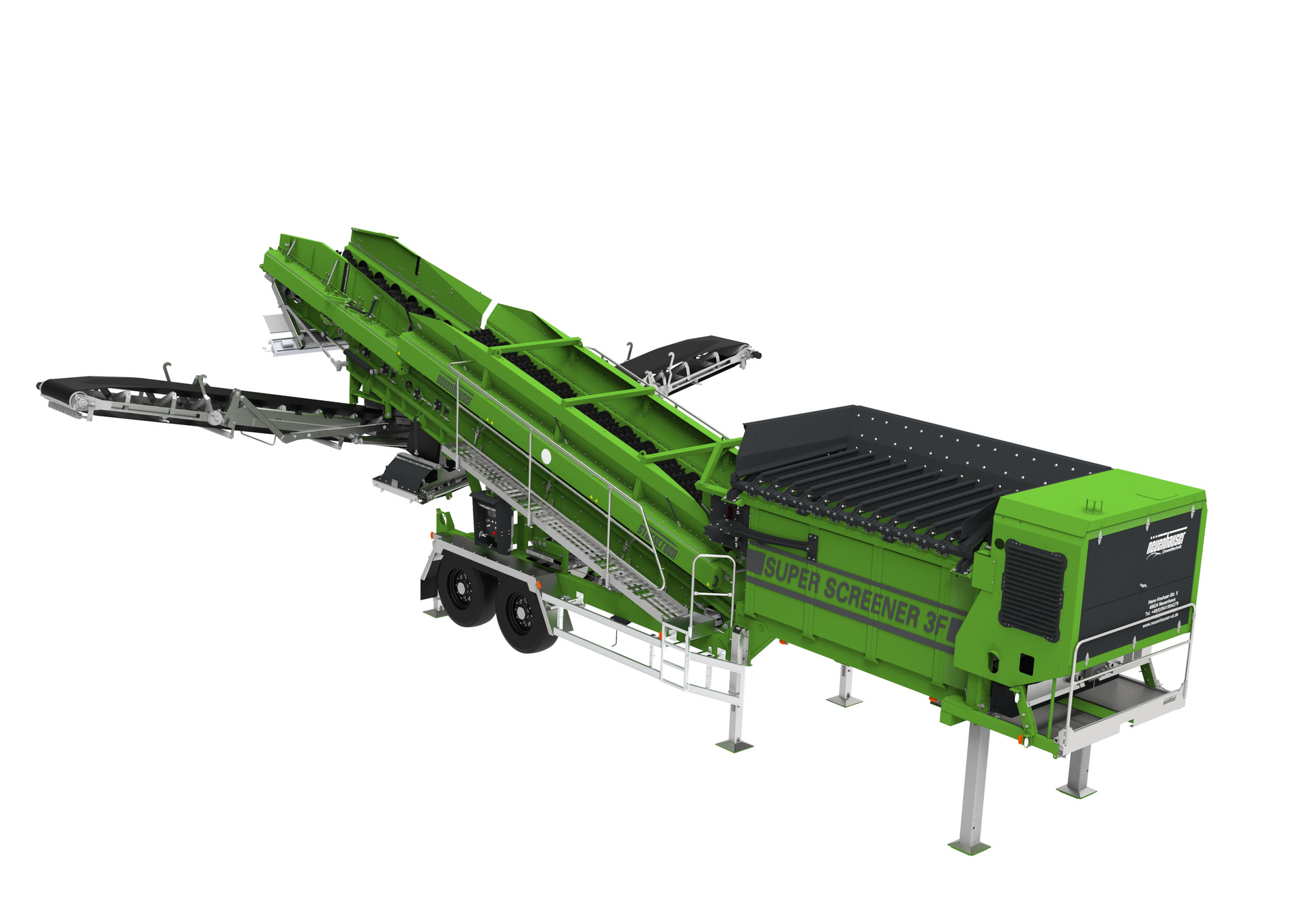 The Neuenhauser 3 Fraction StarScreen provides superior screening in the recycle industry. Designed to run directly after a grinder to produce a fines product (topsoil), finished mulch and oversize for regrind. The screening efficiency reduces regrind costs by removing all fines and finshed mulch leaving only a small percentage of oversize. Neuenhauser Star screens are designed and built specifically for topsoil, recycling, wood chippings, mulch and compost applications.