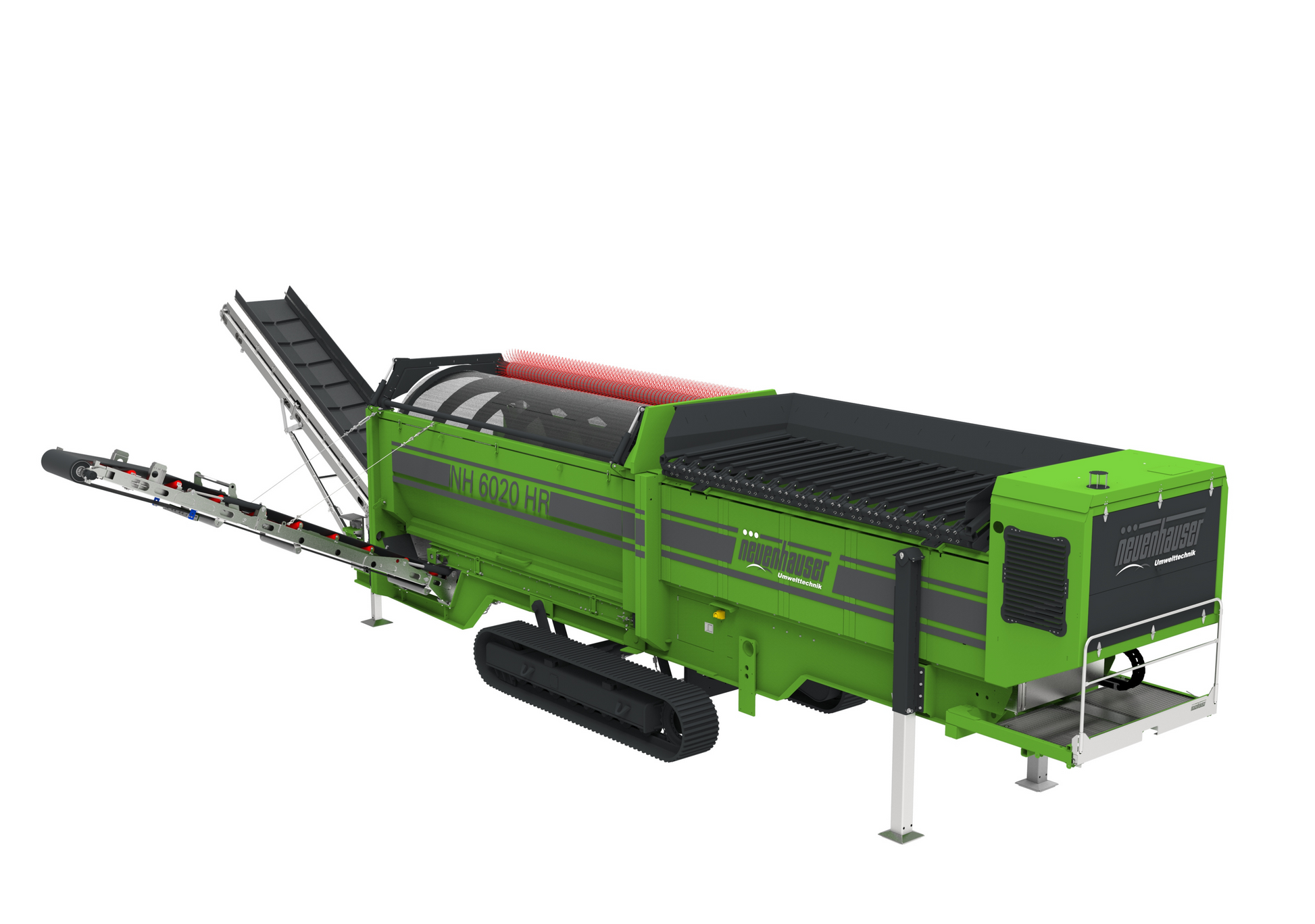 The Neuenhauser NH6020H trommel features a European spiral style drum which is interchangeable with most other manufactures. The ripped belt drive avoid belt slippage on the large 15yd3 hopper. With a water cooled engine and turbo loaded with air to air load cooling this trommel can work in even the harshest conditions.